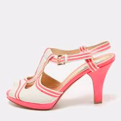 Moschino Neon Pink/White Leather Strappy Peep Toe Sandals Size 39