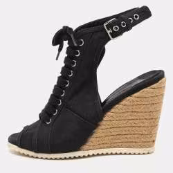 Prada Sport Black Canvas Peep Toe Slingback Sandals Size 37