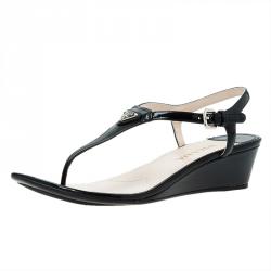 Prada Sport Black Patent Leather Thong Wedge Sandals Size 40