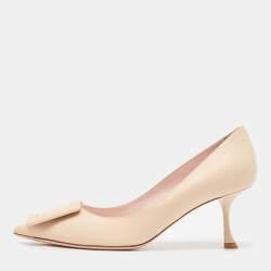 Roger Vivier Beige Leather Viv' in the city Pointed Toe Pumps Size 39