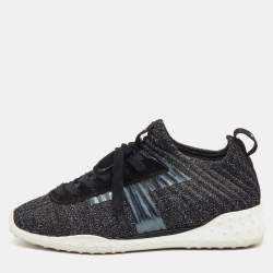 Tod's Metallic Black Lurex Fabric and Suede T Print Sneakers Size 36