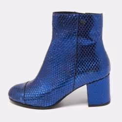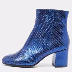 Zadig & Voltaire Blue Python Embossed Leather Block Heel Ankle Booties Size 36