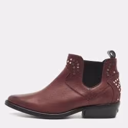 Zadig & Voltaire Burgundy Leather Thylana Studded Ankle Booties Size 36