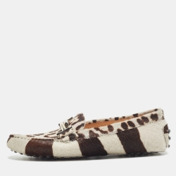 Tod's Grey/Brown Animal Print Calf Hair Double T Buckle Loafers Size 36.5