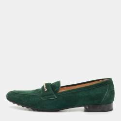 Tod's Green Python Embossed Leather Penny Loafers Size 37