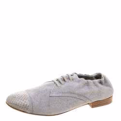 Chanel Grey Canvas and CC Snakeskin Cap Toe Slip On Derby Size 36
