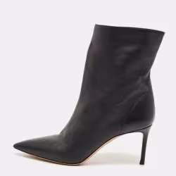Aquazzura Black Leather Pointed Toe Ankle Length Boots Size 37.5