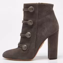 Aquazzura Grey Suede Detail Ankle Boots Size 37