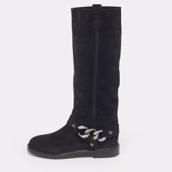 Casadei Black Suede Chain Detail Knee Length Boots Size 38.5