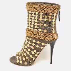 Giuseppe Zanotti Beige Suede Peep Toe Platform Ankle Length Boots Size 37.5