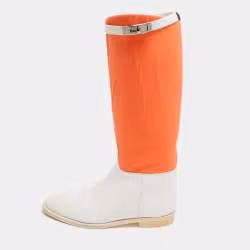 Hermes Neon Orange/White Neoprene and Leather Jumping Boots Size 39