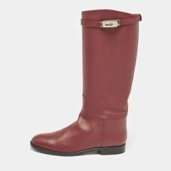 Hermes Burgundy Leather Kelly Jumping Knee Length Boots Size 38.5