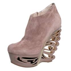 Le Silla Beige Suede Butterfly Wedge Booties Size 38