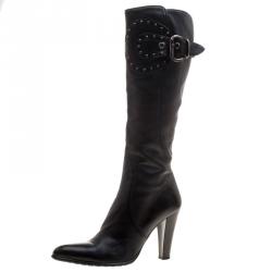 Loriblu Black Leather Buckle Detail Knee High Boots Size 39