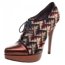 Missoni Multicolor Patterned Knit and Metallic Leather Platform Lace Up Ankle Booties Size 37.5