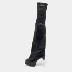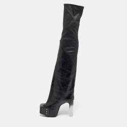 Rick Owens Black Leather Platform Knee Length Boots Size 40