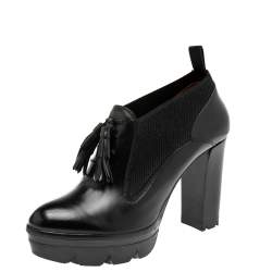 Santoni Black Leather and Elastic Band Tassel Detail Ankle Boots Size 39