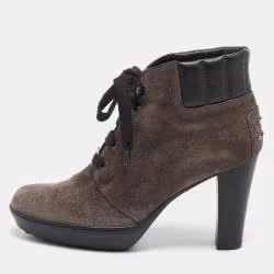 Tod's Grey/Black Suede and Leather Ankle Boots Size 36