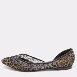 Bottega Veneta Black Lace and Patent Leather Ballet Flats Size 36.5