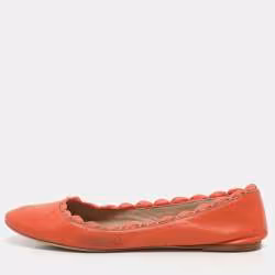 Chloe Orange Leather Laurena Scalloped Ballet Flats Size 37