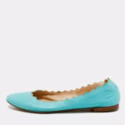 Chloe Turquoise Blue Leather Lauren Scalloped Ballet Flats Size 37