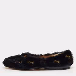 Chloe Black Fur Horse Embroidered Ballet Flats Size 37