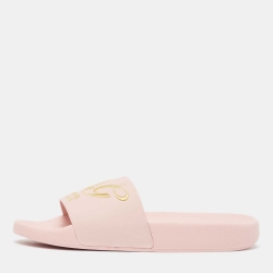 Dolce & Gabbana Pink Rubber Embroidered Logo Slides Size 37