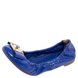 Fendi Royal Blue Patent Leather Bow Detail Scrunch Ballet Flats Size 41