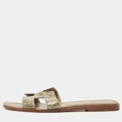 Hermes Metallic Leather Oran Flat Slides Size 40