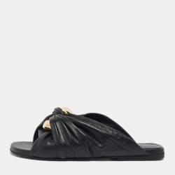J.W.Anderson Black Leather Corner Flat Slides Size 36