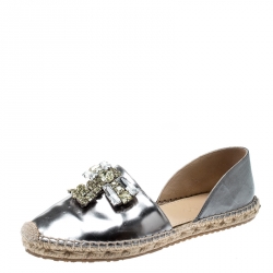 Jimmy Choo Silver Leather Morse Ballet Flats Size 39.5