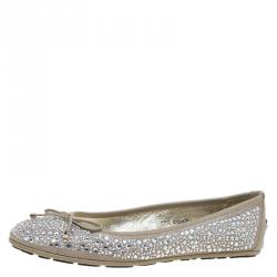Jimmy Choo Beige Leather Crystal Embellished Ballet Flats Size 38