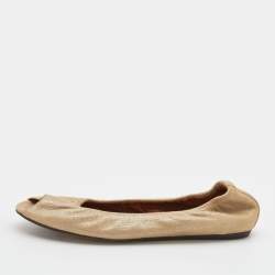 Lanvin Beige Leather Scrunch Flats Size 38.5