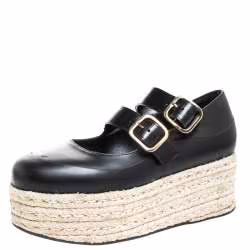Marni Black Leather Buckle Detail Platform Espadrilles Flats Size 38