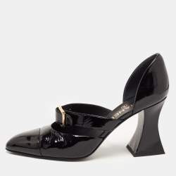 Chanel Black Leather and Patent Leather CC Cap Toe Scrunch Pumps Size 38
