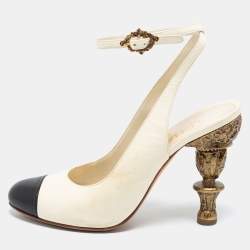 Chanel Black/Gold Leather CC Cap Toe Slingback Pumps Size 38