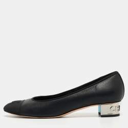 Chanel Black Leather CC Cap Toe Pumps Size 36