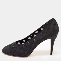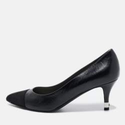Chanel Black Leather and Fabric Cap Toe CC Pumps Size 37