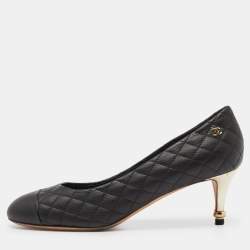 Chanel Black Quilted Leather Round Toe Block Heel Pumps Size 39.5