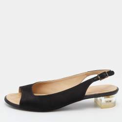 Chanel Black/Gold Leather CC Bow Peep Toe Platform Slingback Pumps Size 39.5