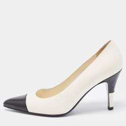 Chanel Beige/Black Leather CC Cap Toe Pumps Size 36
