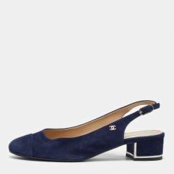 Chanel Navy Blue/Black Leather Cap Toe Slingback Pumps Size 41