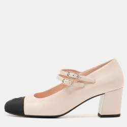Chanel Beige/Black Leather CC Block Heel Pumps Size 39.5