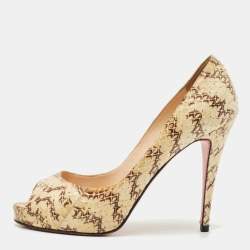 Christian Louboutin Two Tone Python Graffiti Print Lady Peep Pumps Size 40