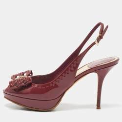 Dior Burgundy Patent Leather Flower Platform Pumps Size 37.5