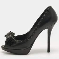 Dior Black Leather Bow Peep Toe Pumps Size 36
