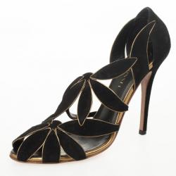 Giuseppe Zanotti Black /Gold Suede Slingback Platform Pumps Size 37