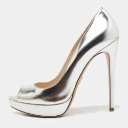 Prada Grey Leather Peep Toe Platform Pumps Size 38