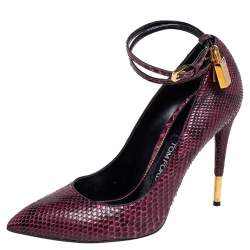 Tom Ford Purple Python Padlock Ankle Wrap Pointed Toe Pumps Size 41