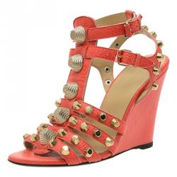 Balenciaga Orange Arena Giant Gladiator Wedge Sandals Size 38